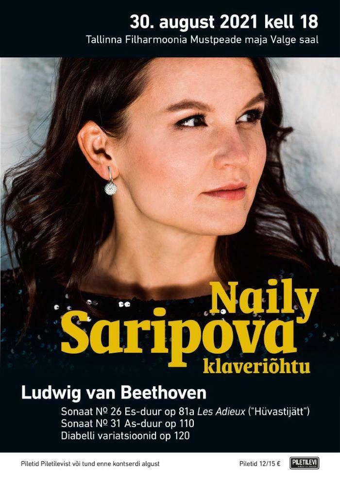 олучившая высокую оценку эстонских и зарубежных критиков. В 2015 году Найли Сарипова выпустила пластинку с редко исполняемым произведением позднего Бетховена "Beethoven Diabelli variatsioonid op 120. Naily Saripova LIVE''.